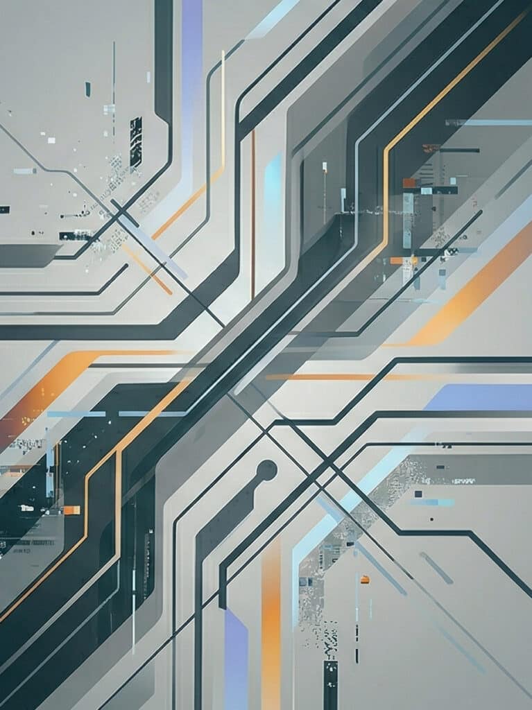 Geometriska former i orange och grått — strukturerad siduppbyggnad för SEO